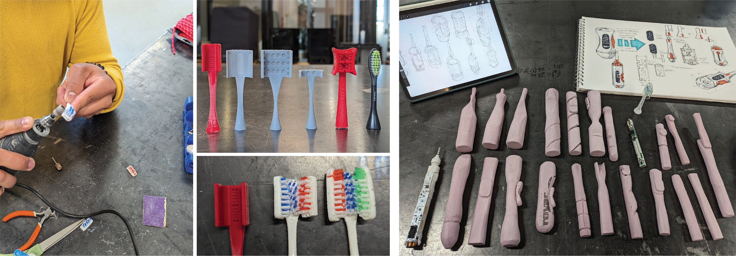 •Several head forms with varying widths and lengths were prototyped to determine the most comfortable design for brushing.